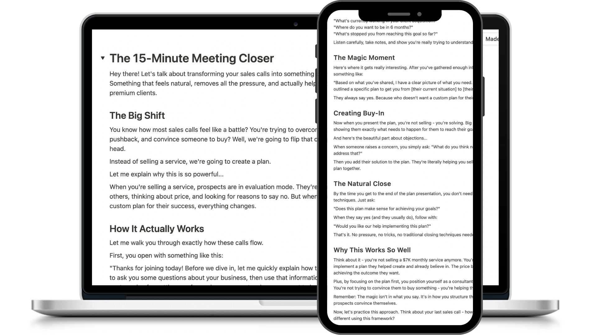 Our proven 5-step sequence that pre-qualifies prospects after they book. Includes qualification criteria, red flag indicators, and word-for-word scripts that maintain our 25%+ close rates at premium prices.